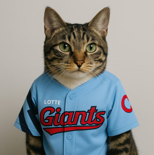 서브로 만들어 본 롯데자이언츠 유니폼을 입은 코숏 고등어 보실 분?