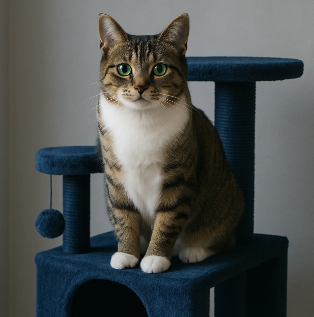 조용하고, 해가 잘 들고, 주변이 탁 트인 위치 — 그것이 딥블루 캣타워가 고양이의 보금자리가 되기 위한 최적의 조건입니다.