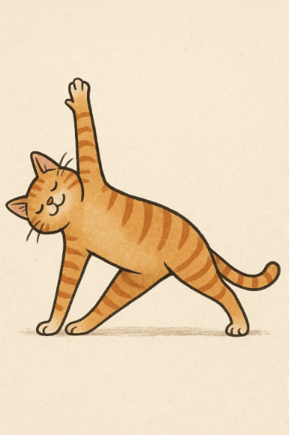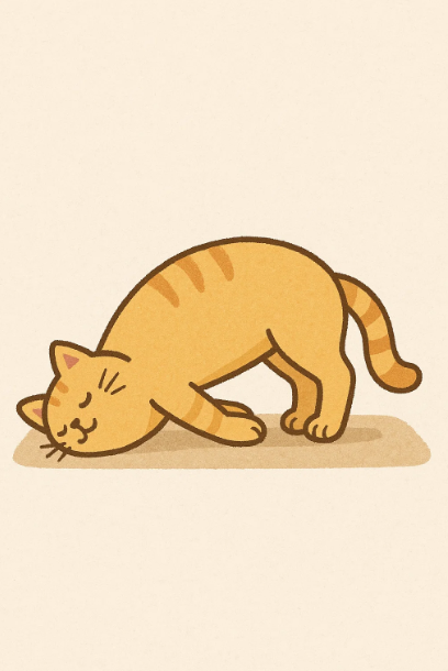 요가는 근육을 부드럽게 풀어주고 호흡을 정리하며 하루를 차분하고 활기 있게 시작할 수 있게 해줍니다. 특히 아침 요가는 따로 큰 준비물이 필요하지 않고 침대 옆이나 거실 바닥 정도의 공간만 있으면 충분히 실천할 수 있기 때문에 직장인들에게 딱 맞는 운동입니다.출근 전 10분만 투자하면 몸과 마음이 한결 가벼워지는 아침 요가 자세를 귀여운 고양이 일러스트로 그려봅니다.