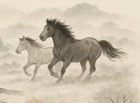 며칠 뒤 도망간 말이 더 빠르고 튼튼한 야생마를 데리고 돌아왔습니다. 이웃들이 부러워하자 새옹은 또 말합니다.