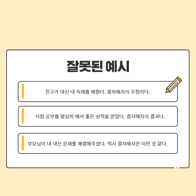 자업자득(自業自得) – 스스로 한 일의 결과를 스스로 받는다는 뜻으로 자신의 행동이 결국 자신에게 돌아온다는 의미입니다. 결자해지(結者解之)보다 좀 더 인과응보적인 측면을 강조합니다.