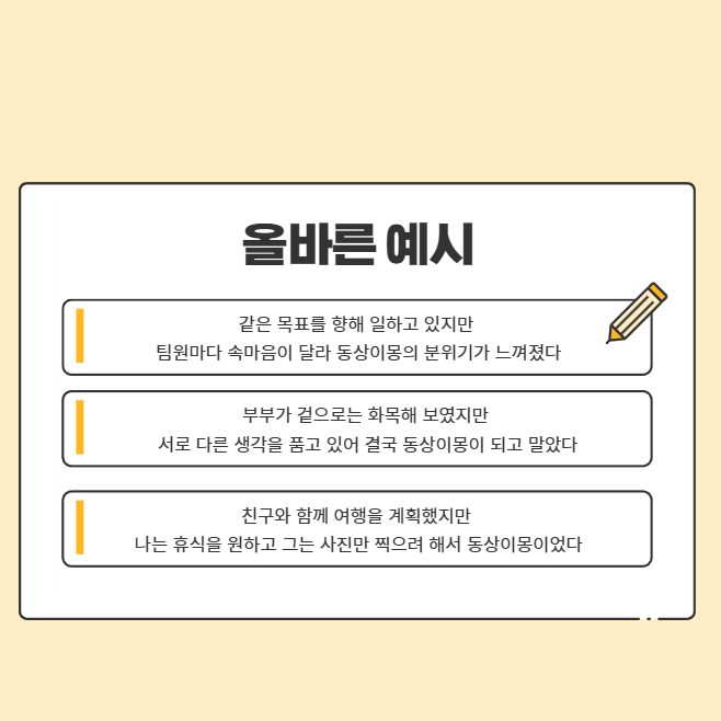동상이몽과는 정반대의 관계로 보이지만 비교를 통해 서로의 의미가 더 분명해집니다.